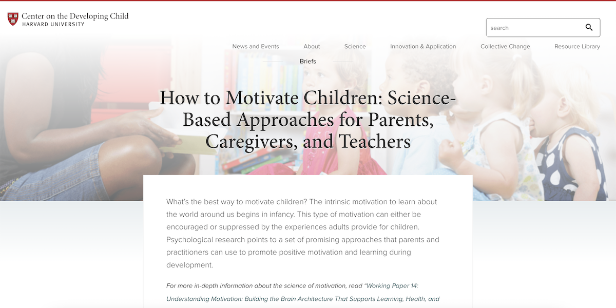 What's the best way to motivate children? The intrinsic motivation to learn about the world around us begins in infancy. This type of motivation can either be encouraged or suppressed by the experiences adults provide for children. Psychological research points to a set of promising approaches that parents and practitioners can use to promote positive motivation and learning during development.